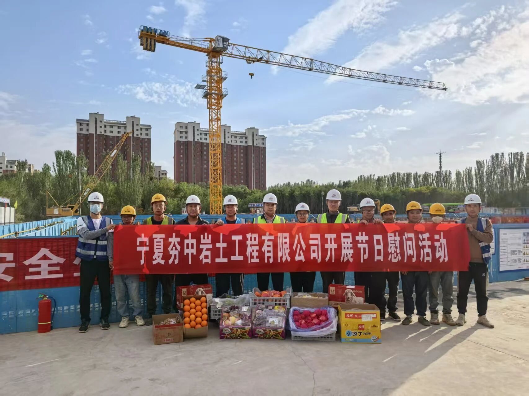 秋风送爽,中秋将至。9月29日,在中秋、国庆“双节”来临之际,宁夏夯中岩土工程有限公司慰问组前往各项目部,为坚守在一线的员工送去节日的祝福与慰问品。